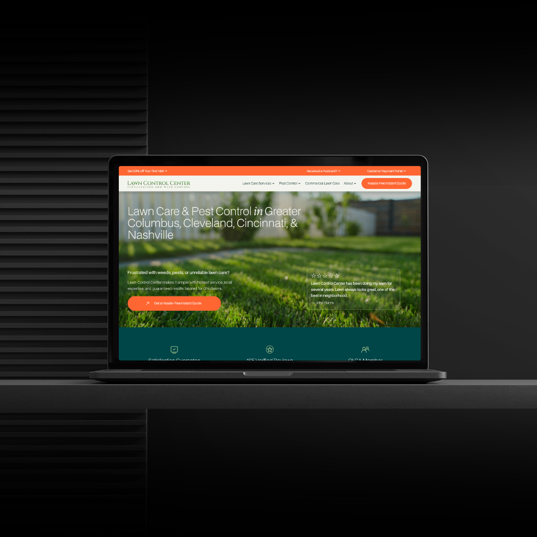 The website redesign supported a larger strategic shift, moving from a transactional, lead-driven service model to a long-term, brand-first growth engine. The visual system was built to rebuild trust, communicate professionalism, and differentiate Lawn Control Center from national competitors by highlighting their family-owned legacy, local roots, and hassle-free customer experience.